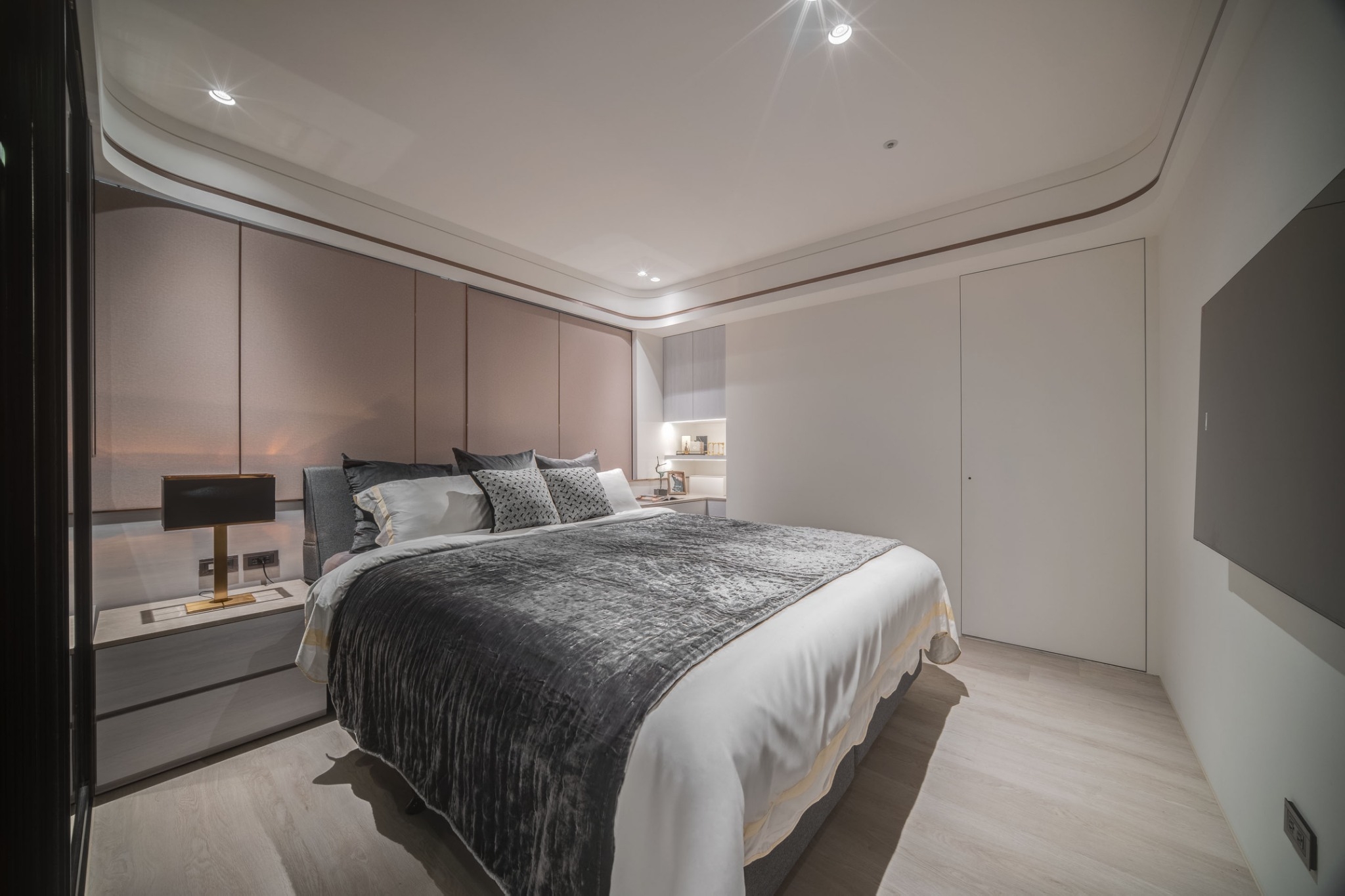 主臥室以柔和的色調為主,打造空間沉穩內斂的氛圍。